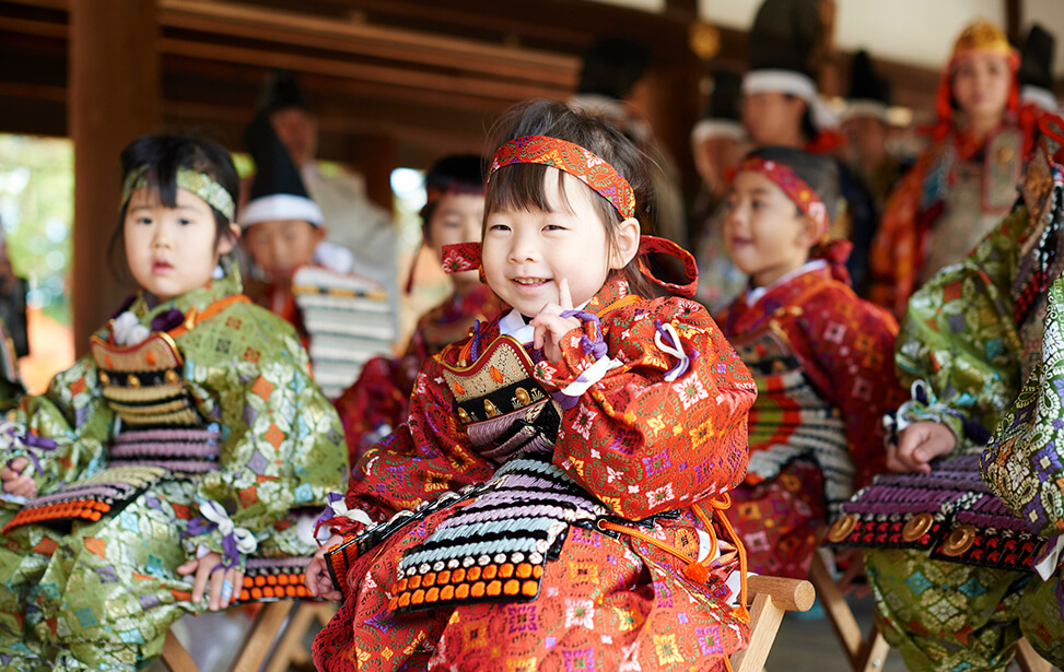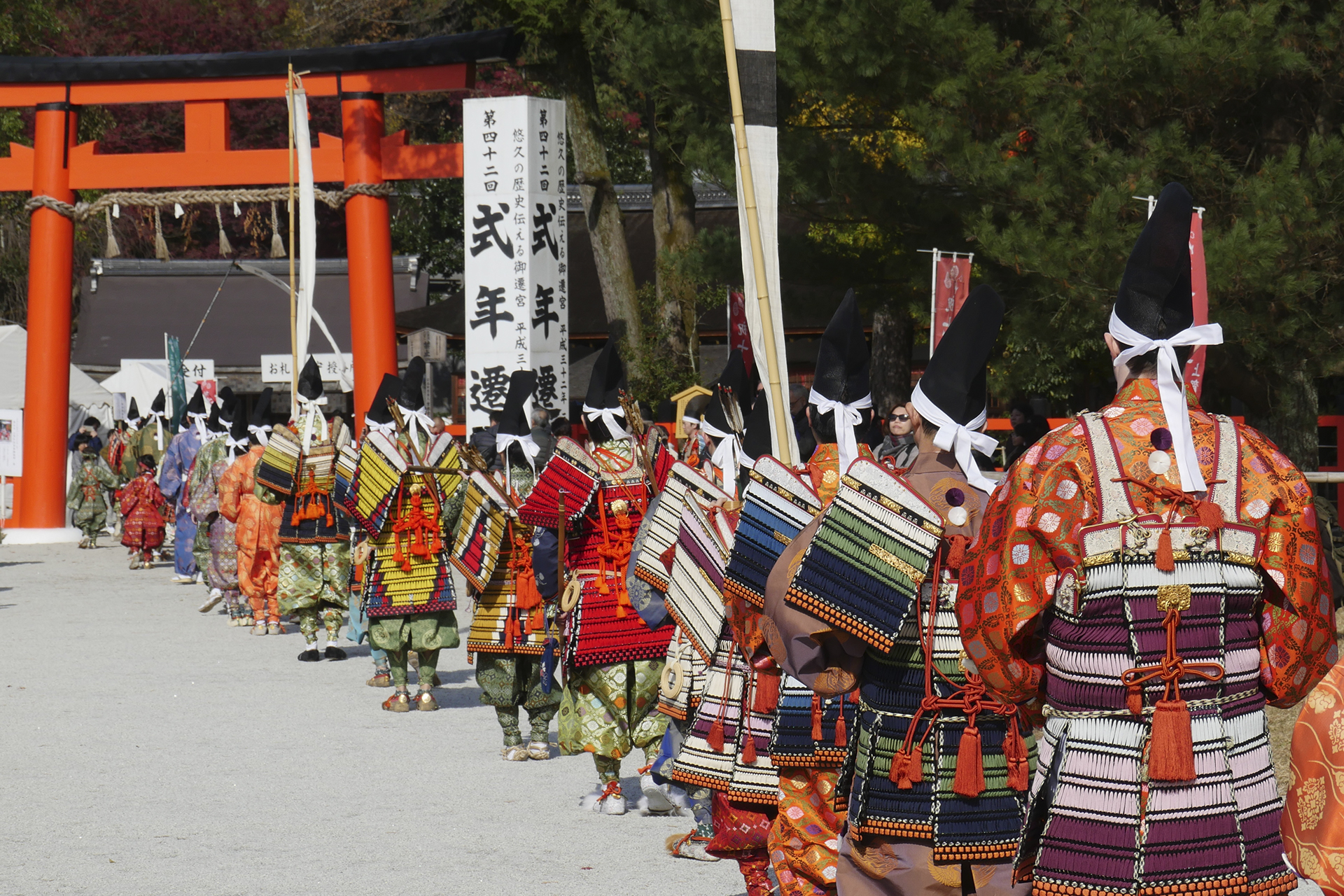 京都の世界文化遺産である上賀茂神社では大鎧の着初式が毎年11月23日に行われています。