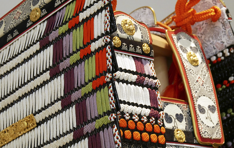 大鎧には目を見張る見事な美しい伝統工芸の技法が各所に施されています。