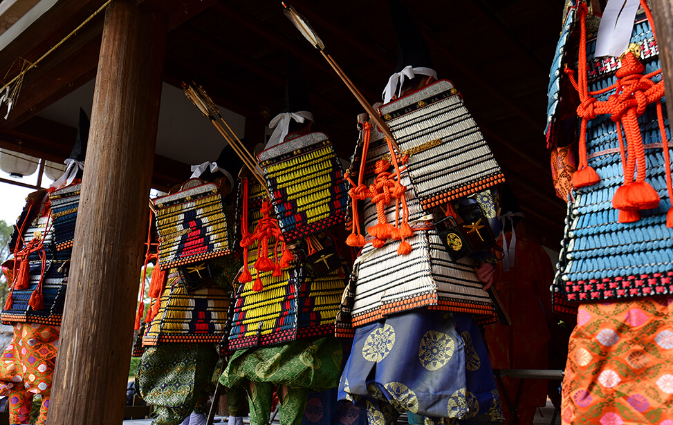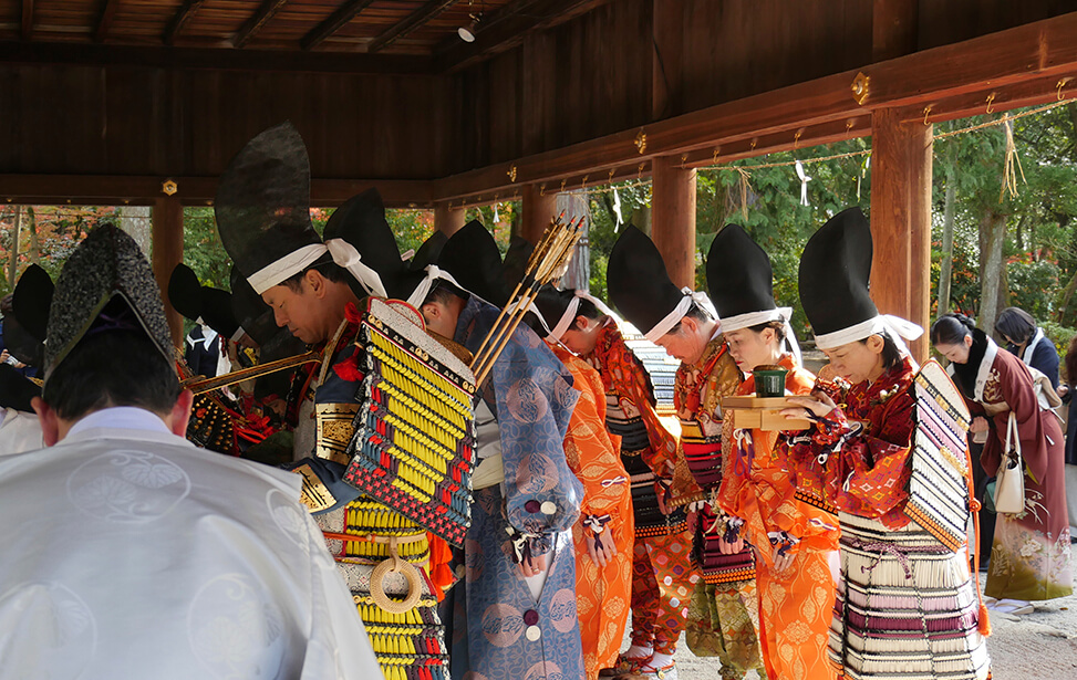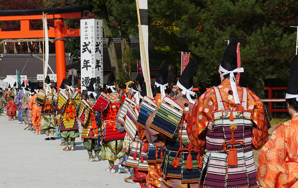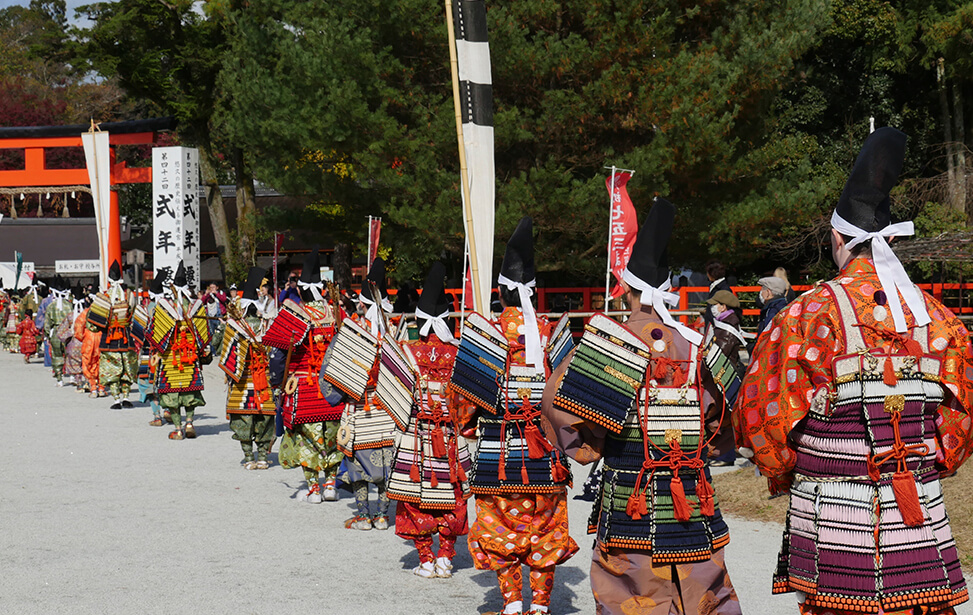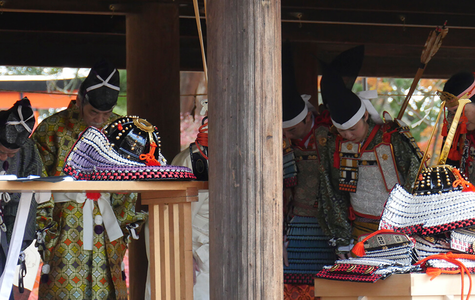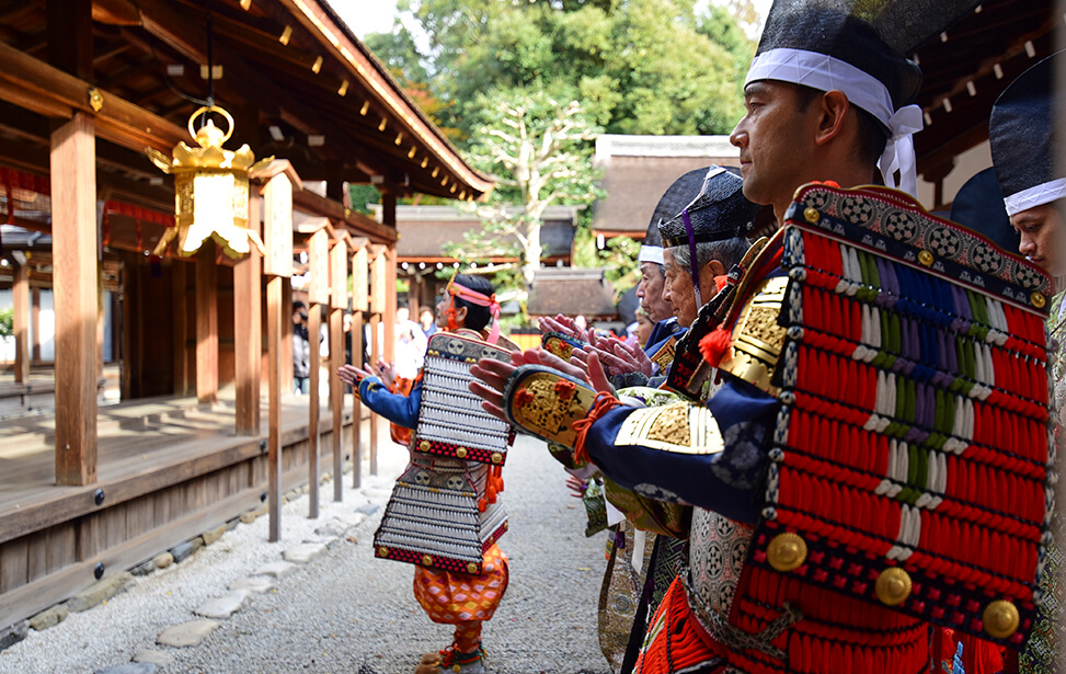 京都の世界文化遺産である上賀茂神社では大鎧の着初式が毎年11月23日に行われています。