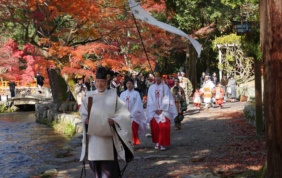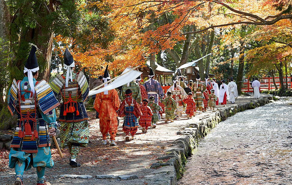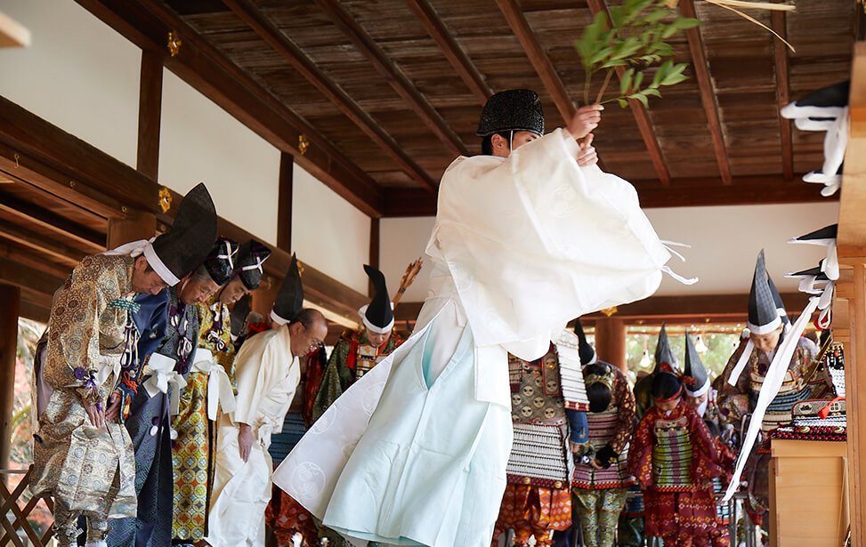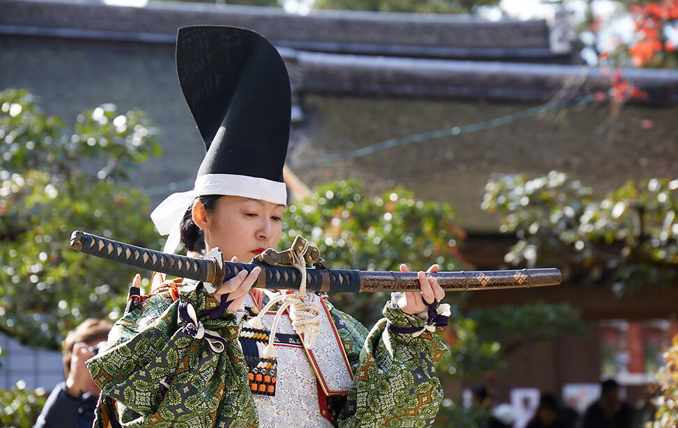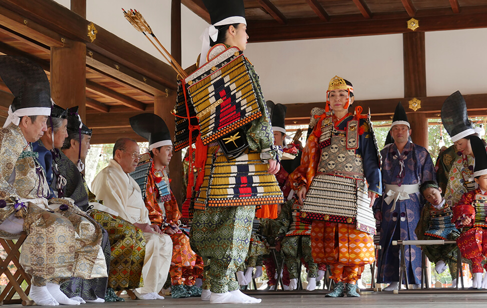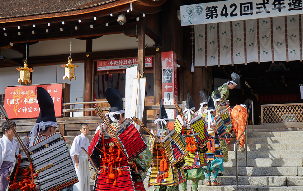 京都の世界文化遺産である上賀茂神社では大鎧の着初式が毎年11月23日に行われています。