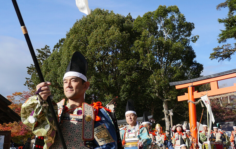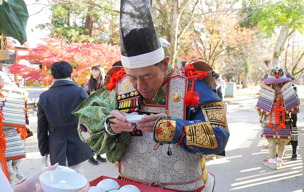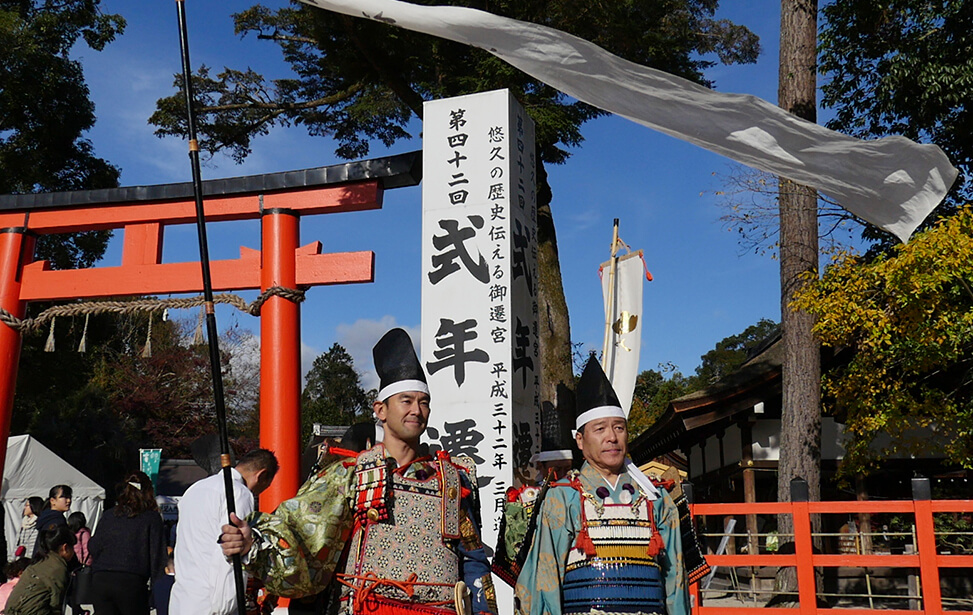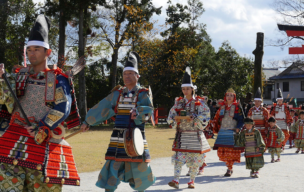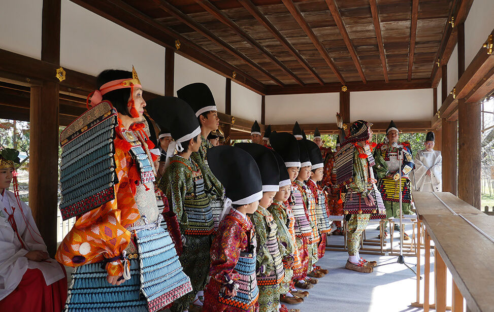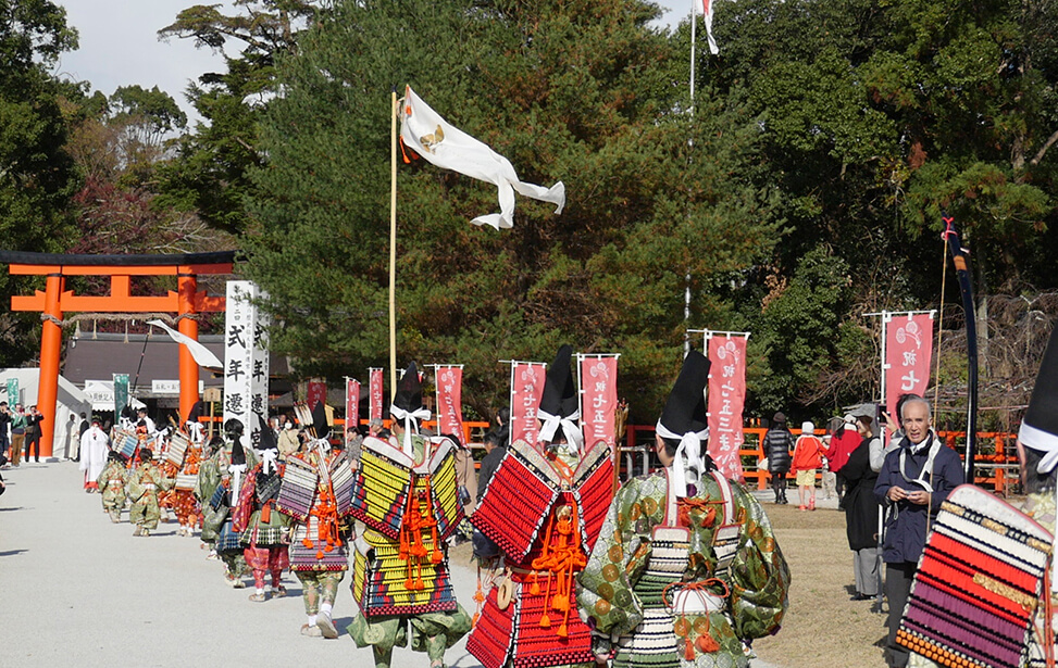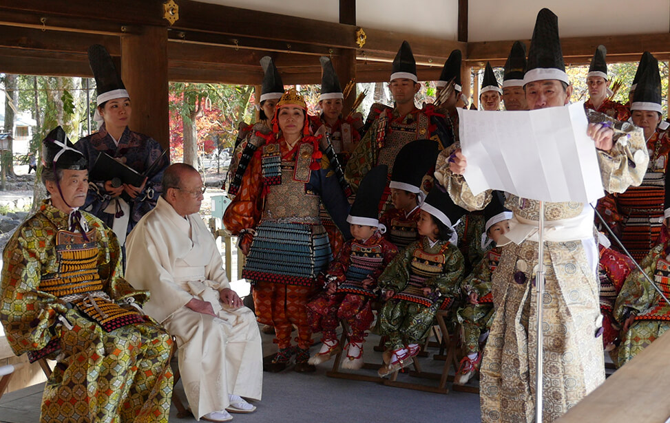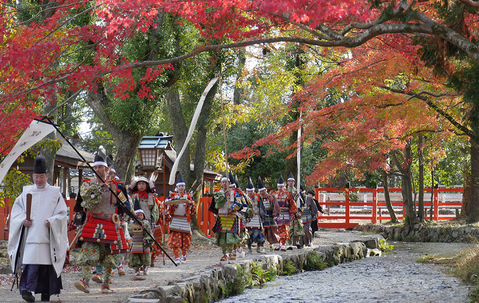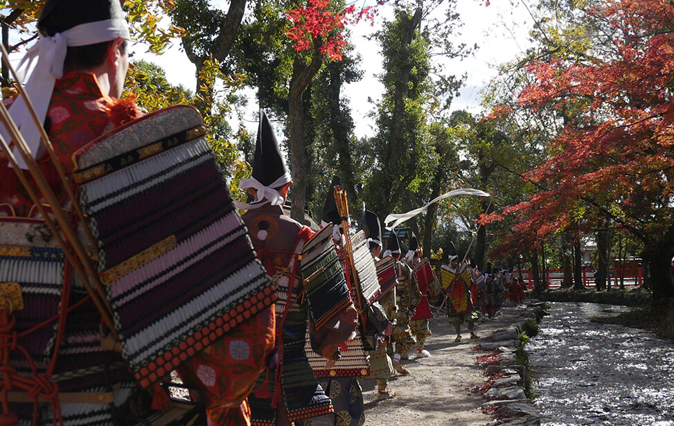 京都の世界文化遺産である上賀茂神社では大鎧の着初式が毎年11月23日に行われています。