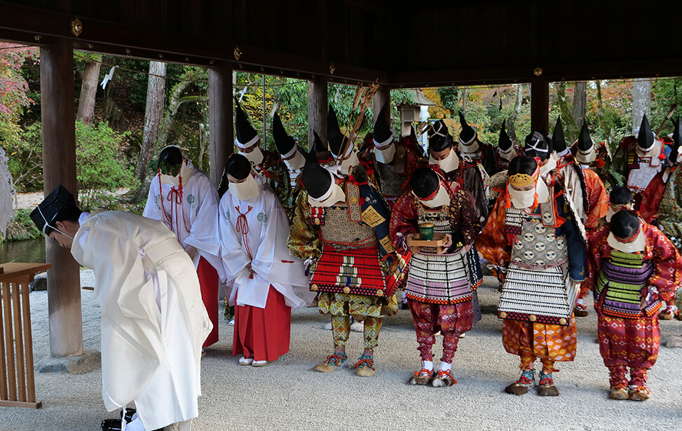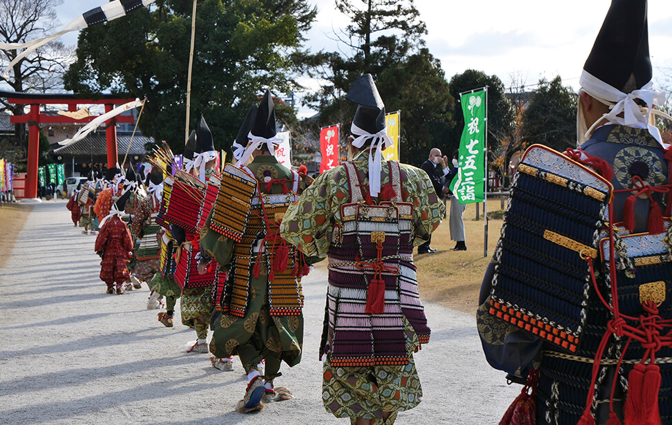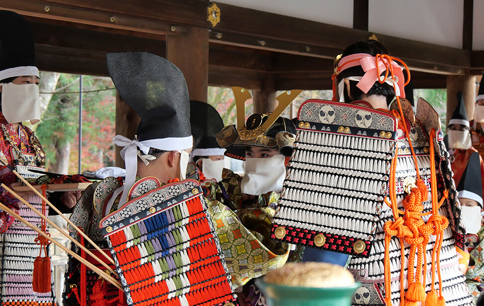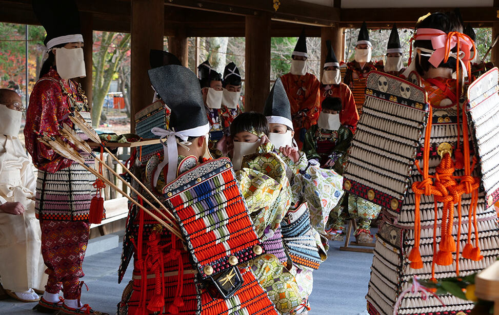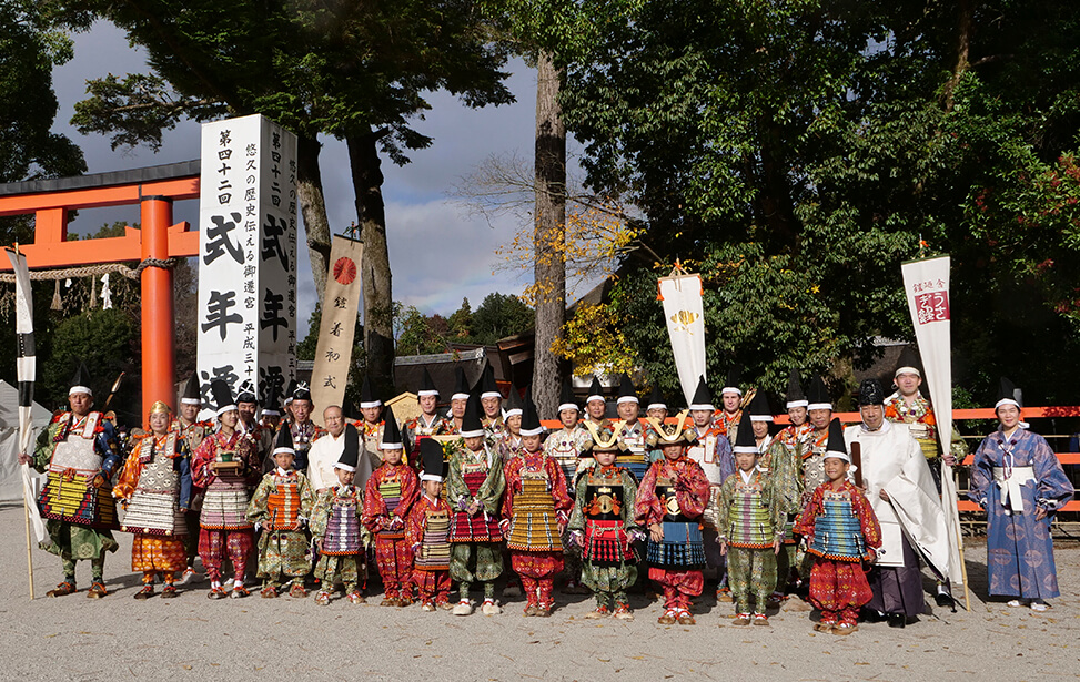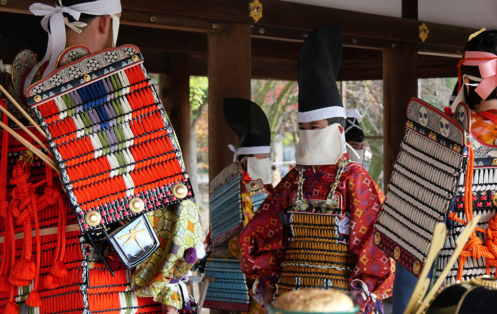 京都の世界文化遺産である上賀茂神社では大鎧の着初式が毎年11月23日に行われています。
