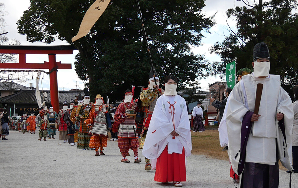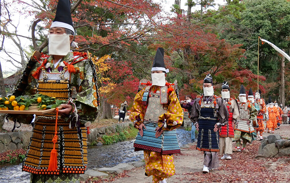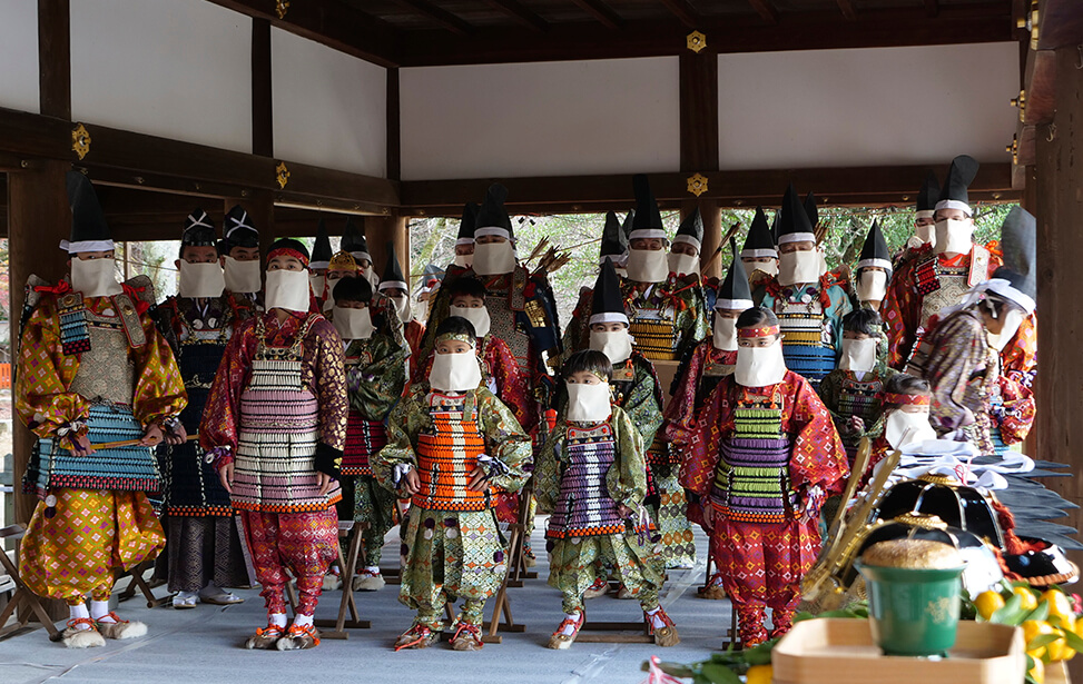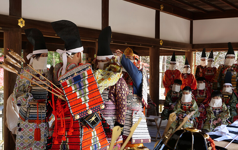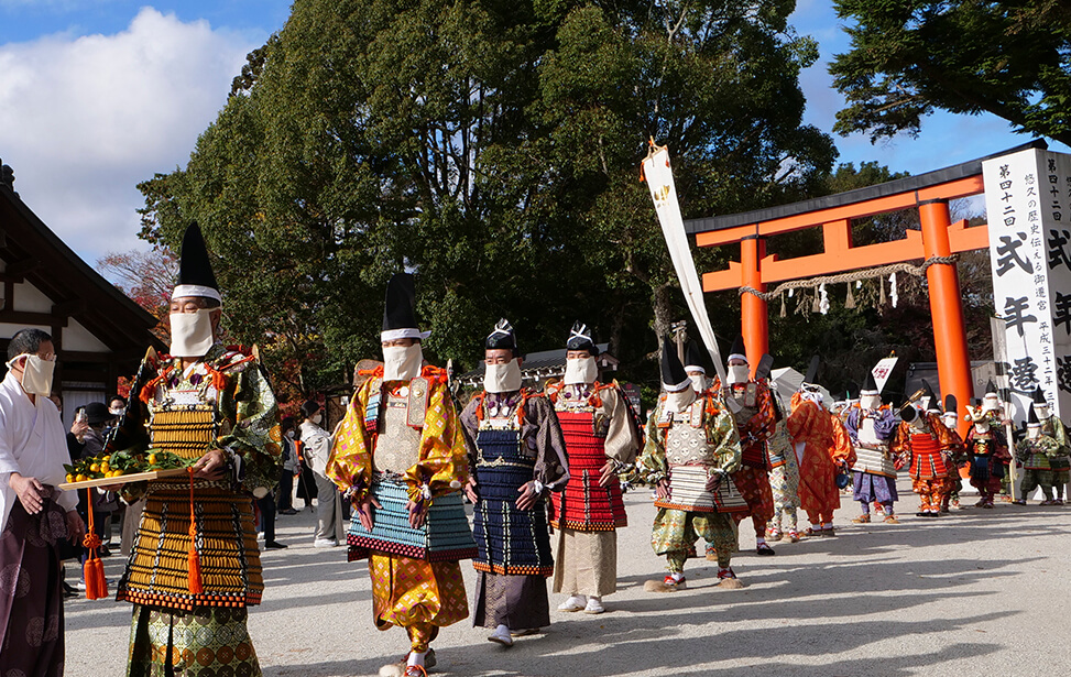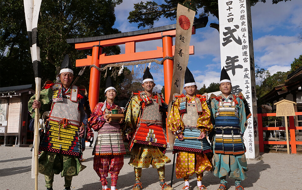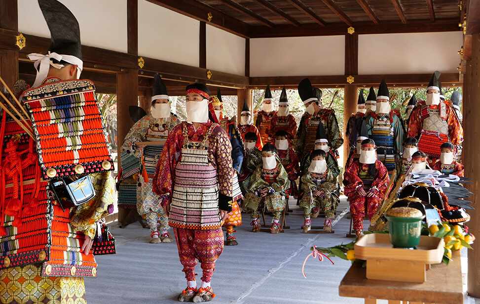 京都の世界文化遺産である上賀茂神社では大鎧の着初式が毎年11月23日に行われています。